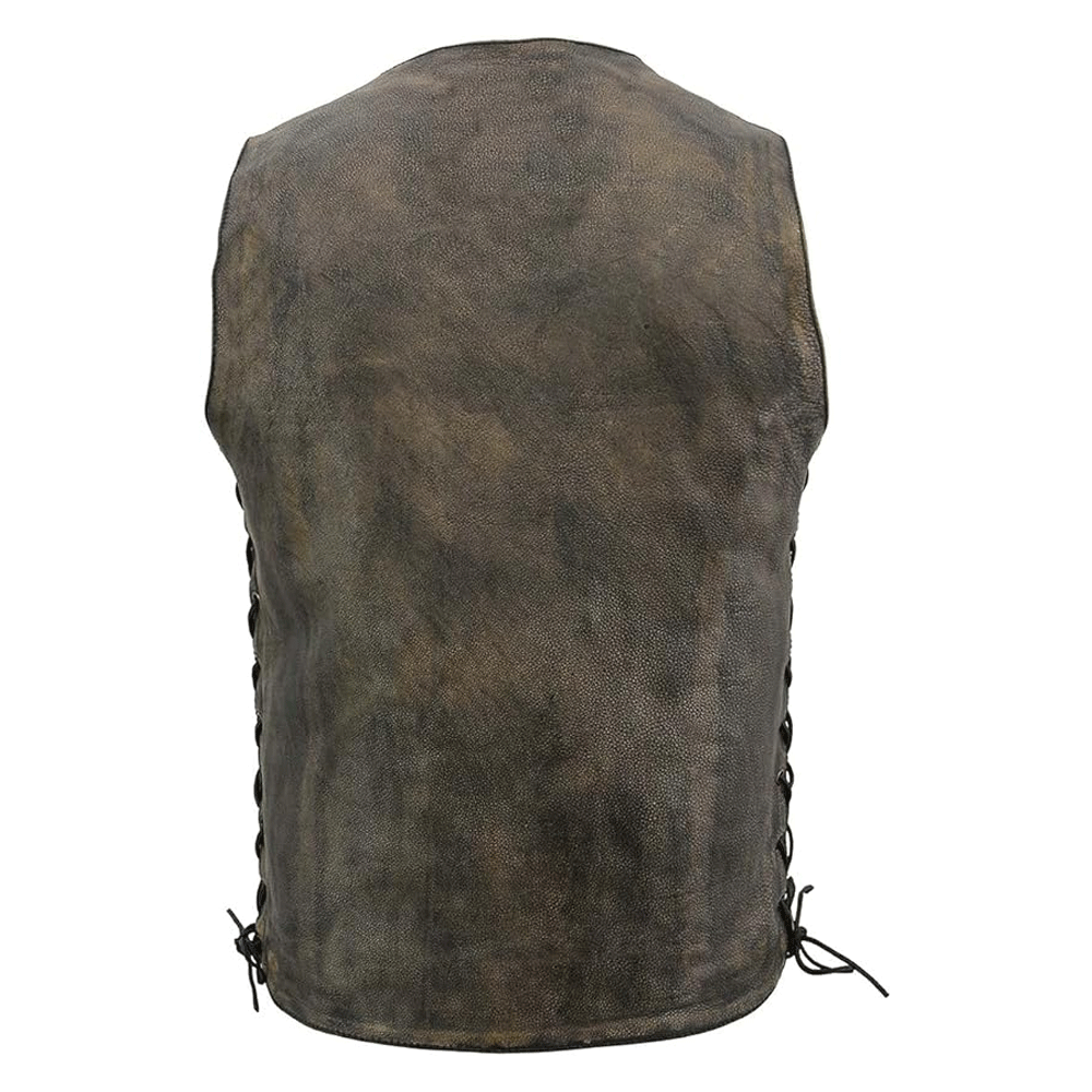 • Closure: Leather vests can have different types of closures, including zippers, snap buttons, or a front lace-up design.