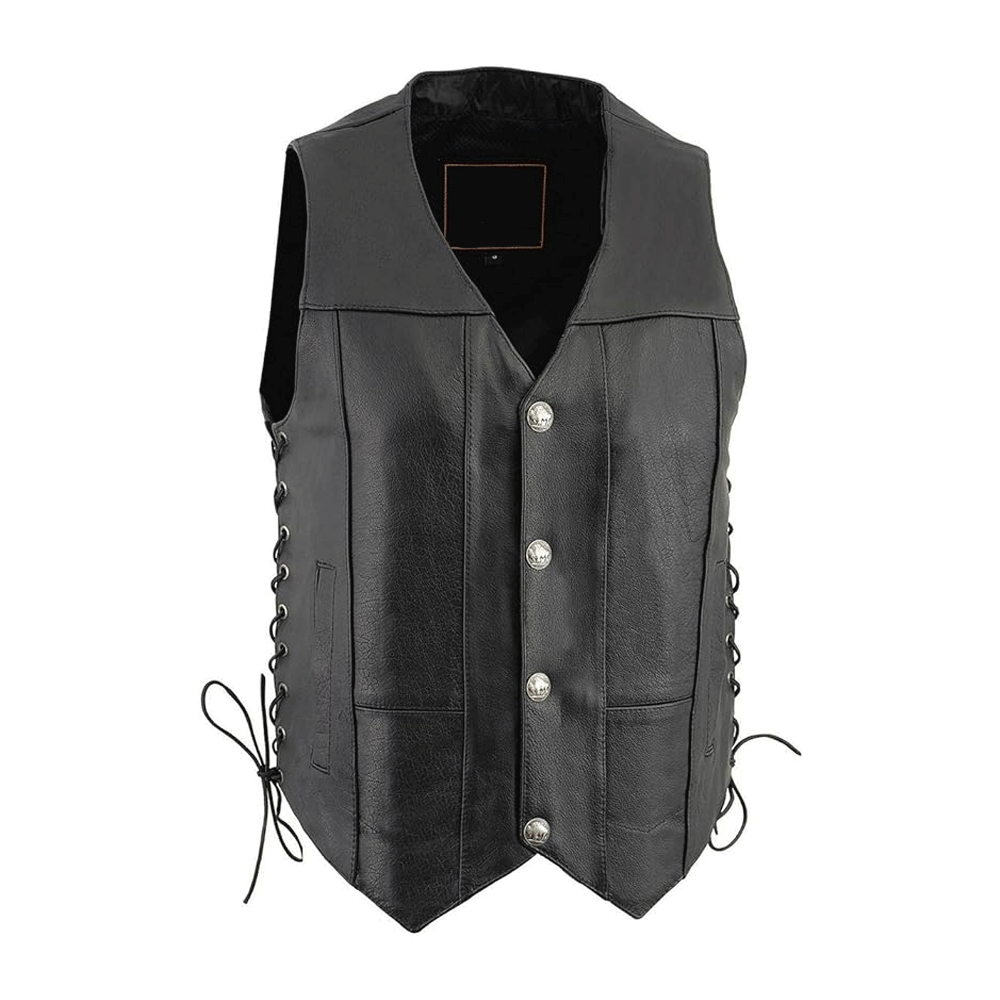 • Closure: Leather vests can have different types of closures, including zippers, snap buttons, or a front lace-up design.